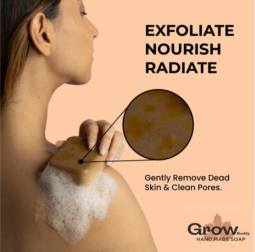 GrowBuddy Sandalwood & Saffron Magic Soaps For Bath (100 Gms Pack Of 3) | Paraben Free | Chandan & Kesar Bath Soap | Handmade Soaps For Glowing | Skin Brightening Soap For Men & Women